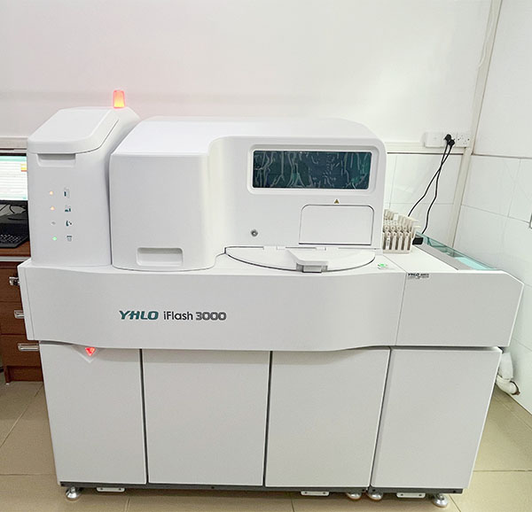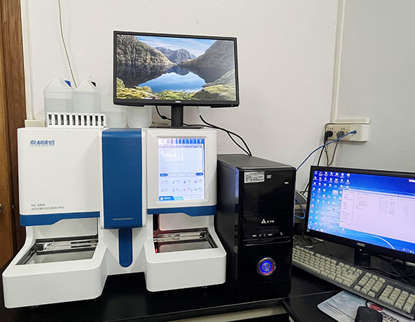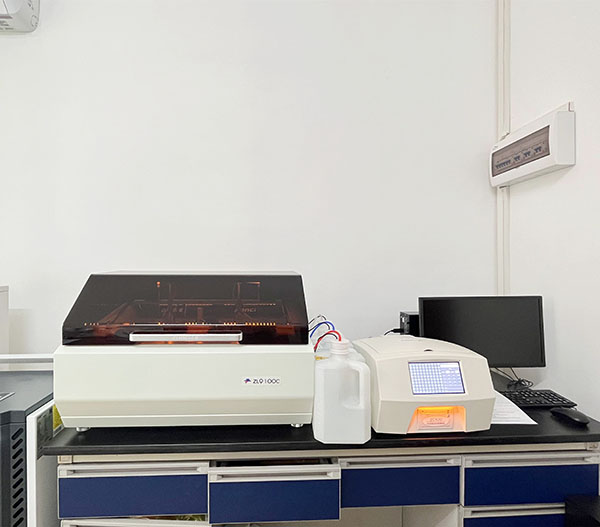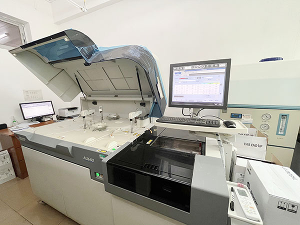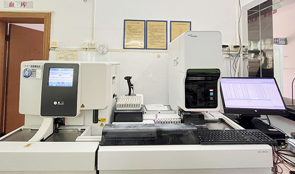 实验室拥有一系列现代化检验设备,包括:希森美康全自动五分类血球仪XN2800,贝克曼生化分析仪AU680,亚辉龙全自动化学发光仪iFlash 3000、迈瑞全自动凝血仪、优利特尿液分析仪、血沉仪、血流变检测仪、糖化血红蛋白自动分析仪、蓝鲸96通道核酸提取仪、迪安MC-1000型PCR仪等。仪器均严格执行质量控制与保养程序,以保证检测结果的准确性。