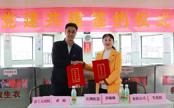 党建共建签约仪式在长洲码头穗水巴61船隆重举行,省工人做爱自拍 党委和客轮公司党委签订党建共建协议书。长洲街道办事处党工委副书记罗琳琳,广州公交集团客轮有限公司党委副书记、总经理韦尧娟,做爱自拍 党委副书记黄刚及相关人员参加了仪式。