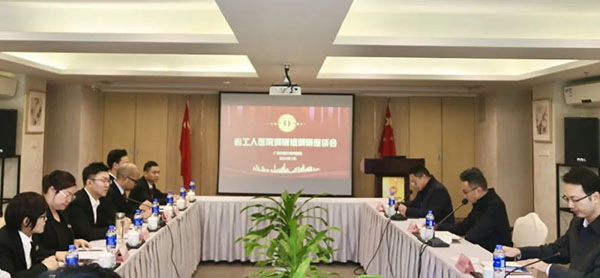 座谈会上,劳模基地财务总监潘文光同志向调研组汇报了广东劳模疗休养基地2023年经营情况以及二次消防改造工作的进展情况。