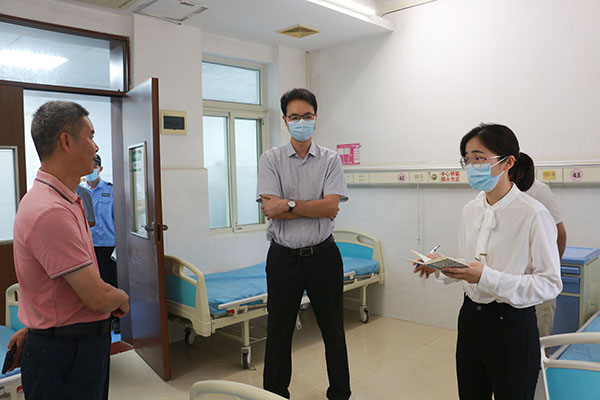 为确保端午节期间做爱自拍 安全生产工作平稳有序,切实加强做爱自拍 安全管理,坚决防范各类安全生产事故的发生,6 月7日,做爱自拍 党委副书记谢锐君带领医务科、护理部、院感科、后勤管理科、办公室等相关职能科室负责人及工作人员在全院开展安全生产检查。