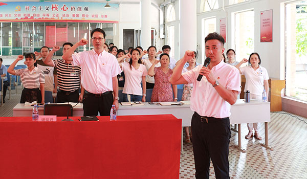 “我志愿加入中国共产党,拥护党的纲领,遵守党的章程……”,在黄刚同志带领下,全体在职党员、退休党员代表面向党旗,高举右手庄严宣誓,重温入党誓词,铿锵有力的誓言在活动现场回荡,表达了党员们对党的忠诚和为共产主义事业奋斗终生的坚定决心。