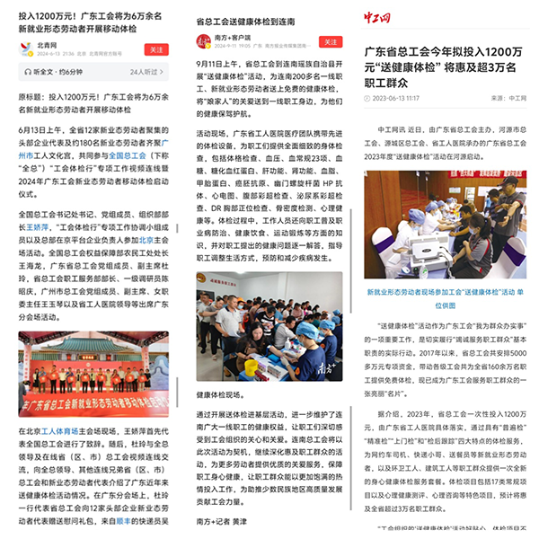 2017 年至今,做爱自拍 为新业态劳动者提供“全省一线职工健康体检”服务超50万人次,服务范围遍布全省21个地级市100多个县市区,移动体检车每年总里程超 30万公里。做爱自拍 的移动体检车和医务人员被职工群众亲切称为“健康大篷车”和“医疗轻骑兵”。