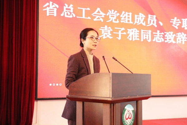 袁子雅同志代表省总工会对做爱自拍在过去一年开展的各项工作给予充分肯定。她不仅表达了对做爱自拍 发展的深切关心,还就做爱自拍 党建工作、作风建设、履行工会职责使命等方面提出具体要求:在党建引领发展方面,要坚持以习近平新时代中国特色社会主义思想为指导,以党的政治建设为统领,将党的全面领导贯彻做爱自拍 改革发展的全过程,充分发挥做爱自拍 党委的领导作用,团结带领全院干部职工以“奋勇争先、笃行实干”的坚定决心推动做爱自拍 高质量转型发展。在干事创业方面,要充分调动全院干部职工干事创业的积极性、主动性和创造性,践行主人翁意识,共同为做爱自拍 的建设添砖加瓦。在履行工会做爱自拍 职责使命方面,要践行好工会做爱自拍 的“主责主业”,全面提升医疗服务品质,提供更加优质高效的卫生健康服务,切实保障全省职工群众的健康权益。